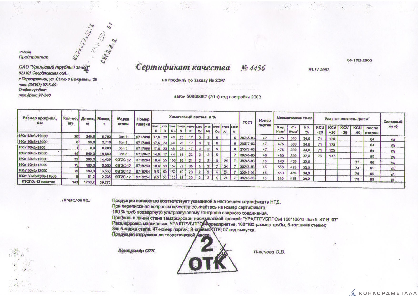 С каждой товарной позицией мы предоставляем все сертификаты и паспорта качества, а также товарно-транспортную накладную.